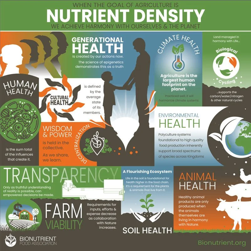 When we make the purpose of agriculture nutrient density, we build soil, community, and health and strengthen our connectivity with Nature.